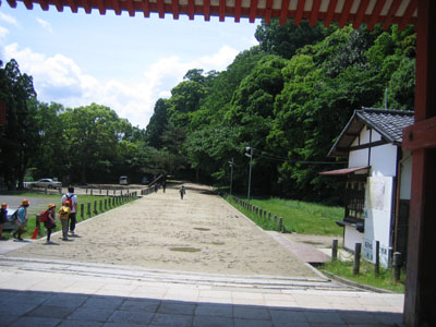 二の鳥居を過ぎると山道にさしかかります。 でも参道は広いです。