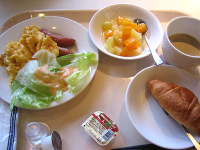 テーブルの隣は三人組の外人さん(ビジネス風) お一人は完全和食の組み合わせ でも 外人さんは大きいですね、 いすが小さくおしりがはみ出しているようでした。