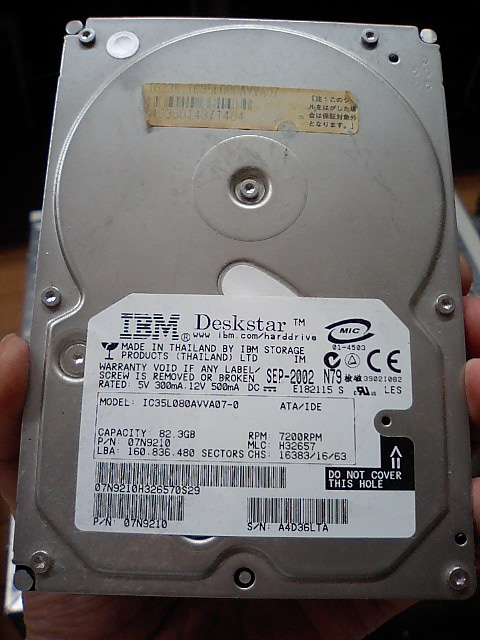 IBM製の80GBのHDDが載っていました!