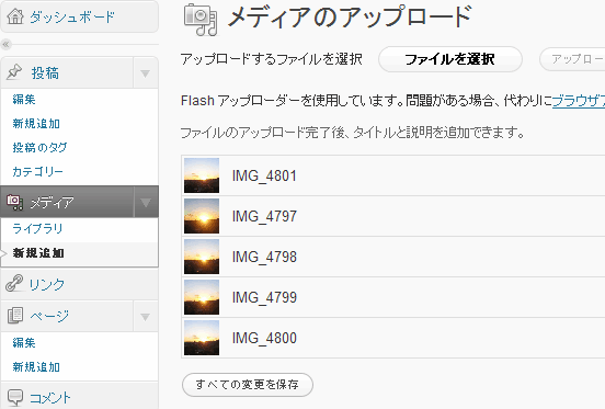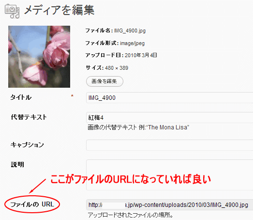 画像の編集 のところでファイルのURLを確かめる