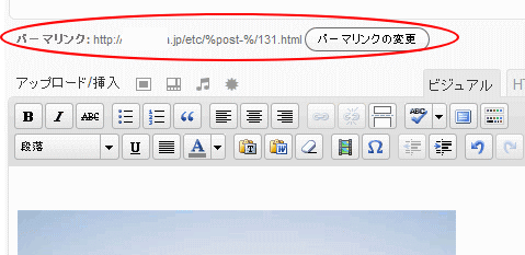 パーマリンクの所後ろが日本語表記に為っているのでここを半角英数に変更