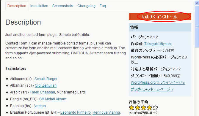 プラグイン説明の右側を見るとインストールのリンクの文字が出てきています。