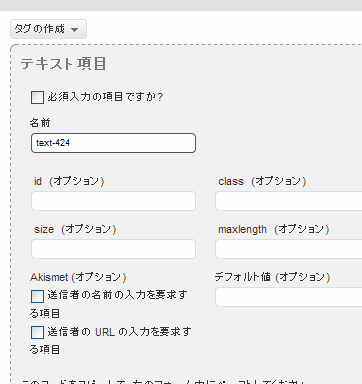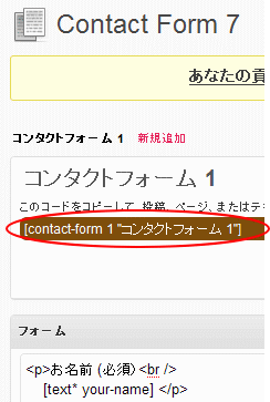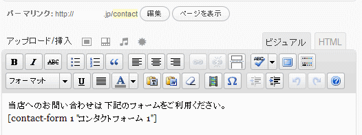 そして本文の所に案内の日本語と[contact-form1 "コンタクトフォーム1"]を入れる