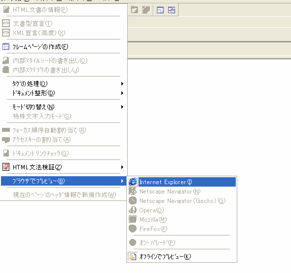 ツールバー ⇒ スペシャル ⇒ ブラウザでプレビュー