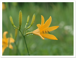高原の朝露 今頃 綿すげも終わり 松虫草が咲いているかしらね、