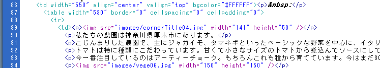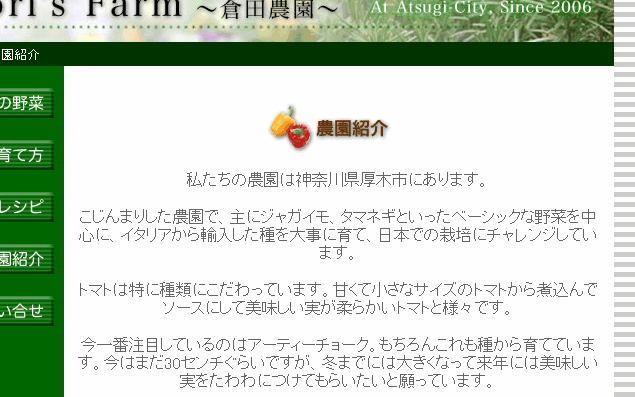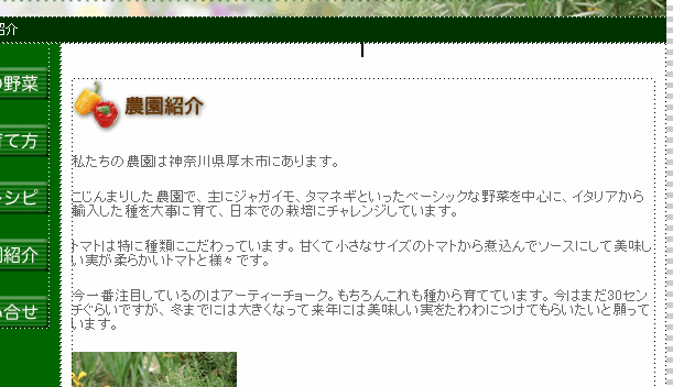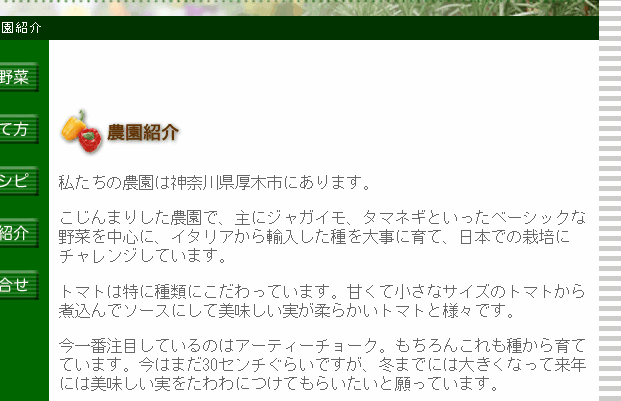 農園紹介の文章は左揃えで出ています。⇒ tableだけがcenterになっています。